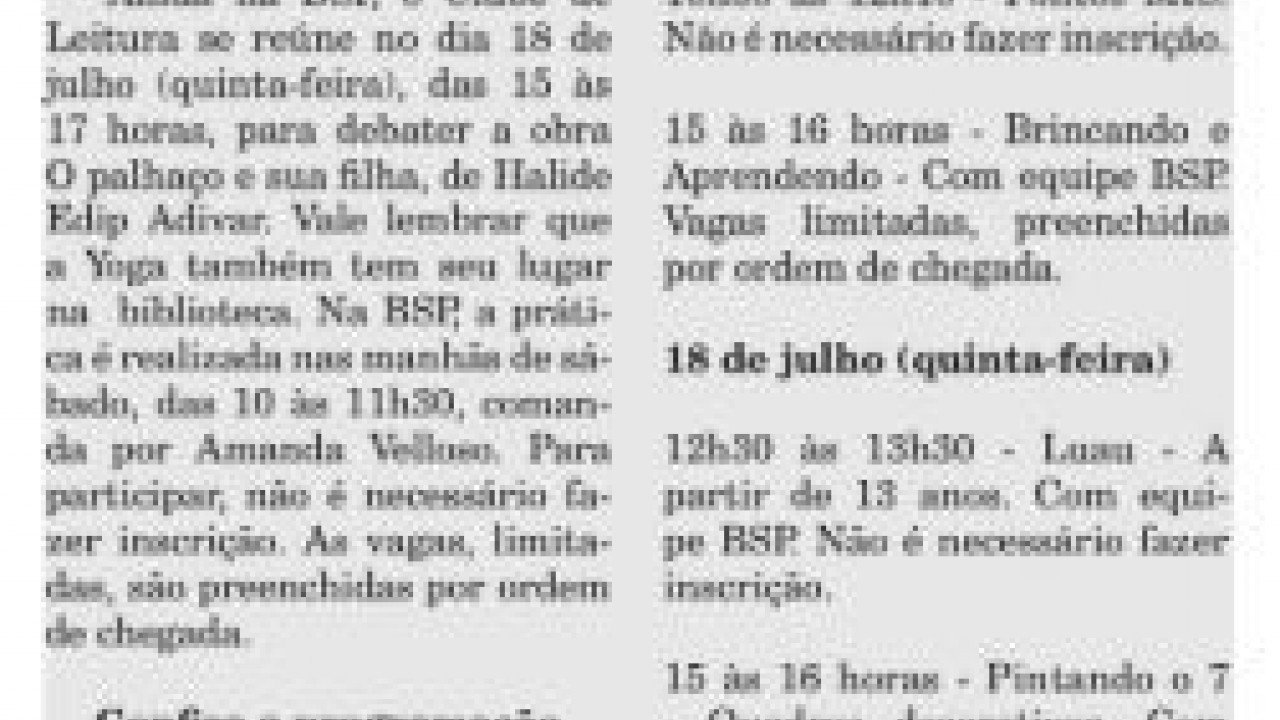 A Gazeta da Zona Norte abriu espaço para o campeonato de videogames, que será realizado na BSP em 17 de julho, próxima quarta-feira. A programação completa dos próximos dias consta da publicação.