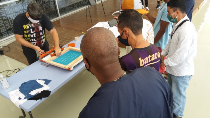 [caption id="attachment_63821" align="aligncenter" width="702"] O escritor Jonas Samaúma conduz a oficina de "Serigrafia em Poesia" em parceria com o designer gráfico Rodrigo Pereira[/captio...