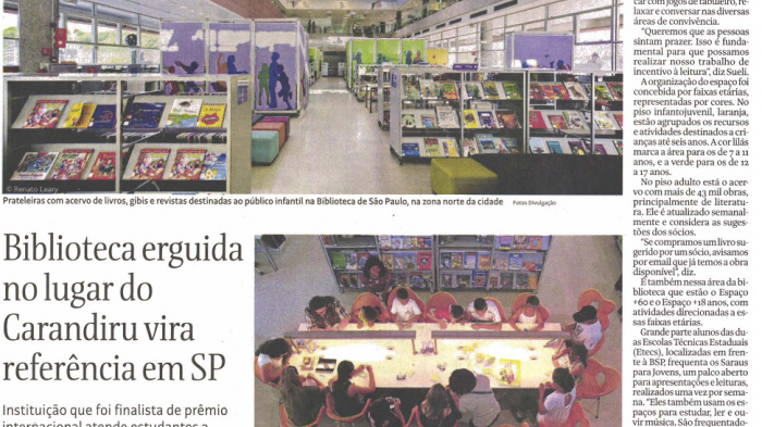 As instalações da BSP, a programação de atividades e o fato de ter sido finalista do prêmio internacional de Biblioteca do Ano chamaram a atenção da reportagem do Caderno Morar, do jornal Folha...